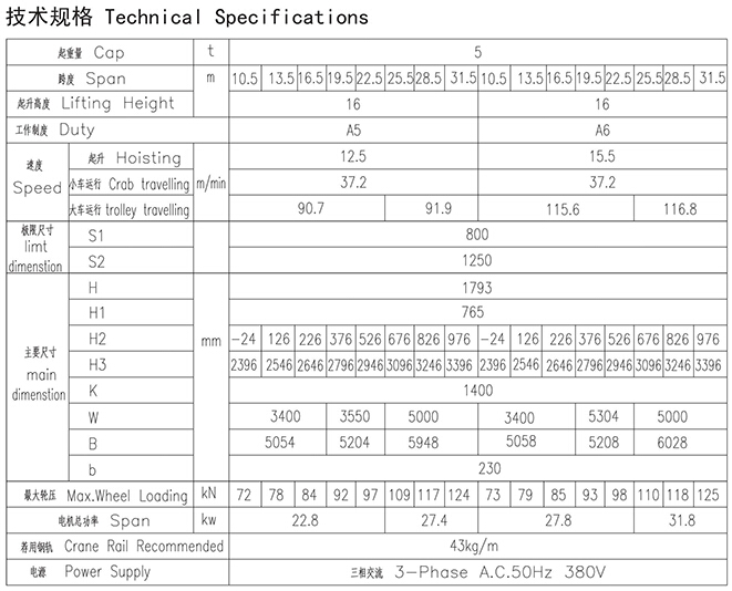 QY型5t绝缘吊钩桥式起重机